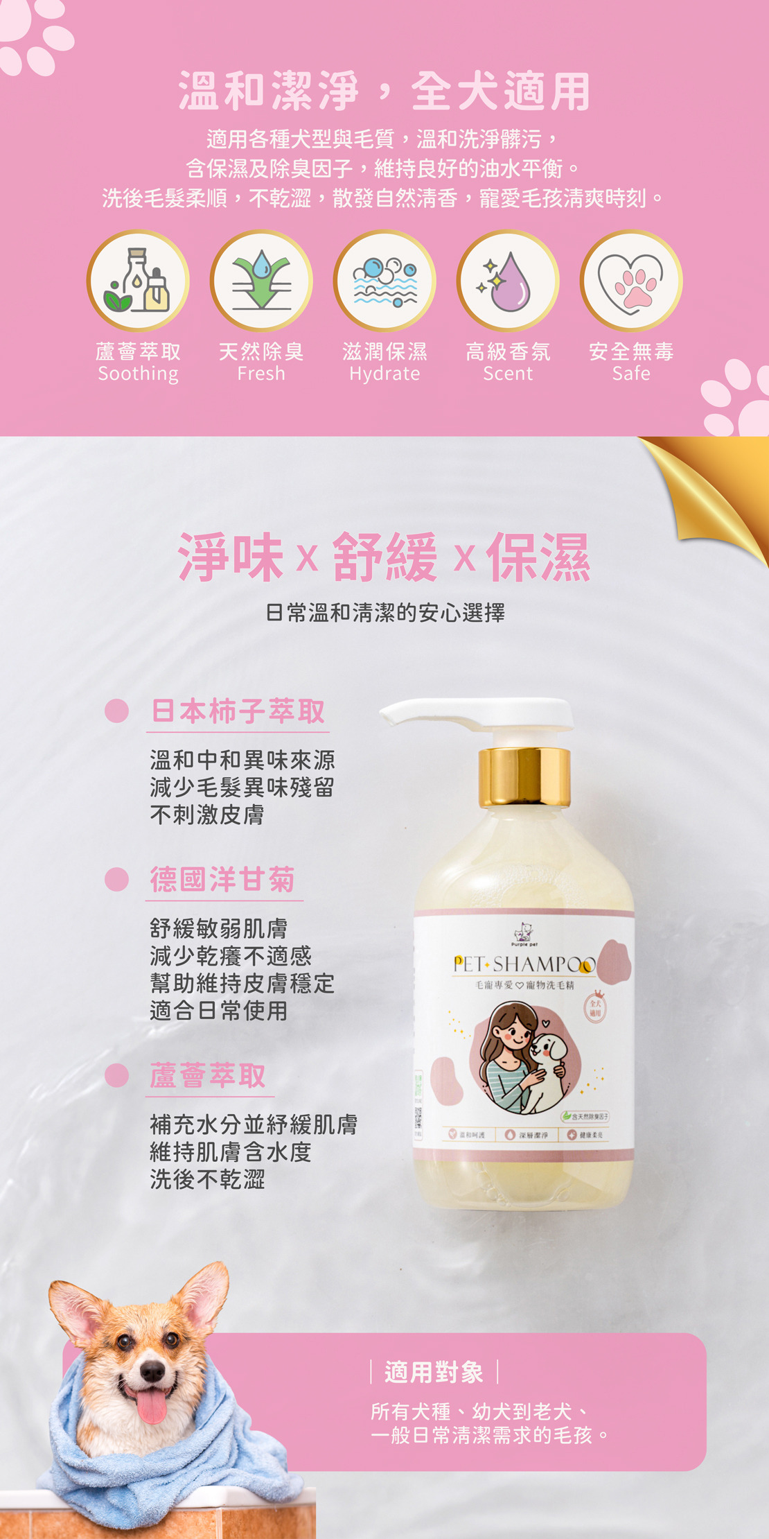 適合各種犬型與毛質,溫和洗淨髒污